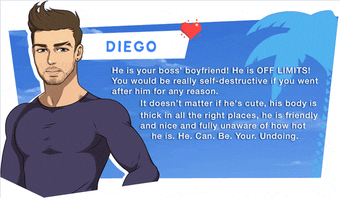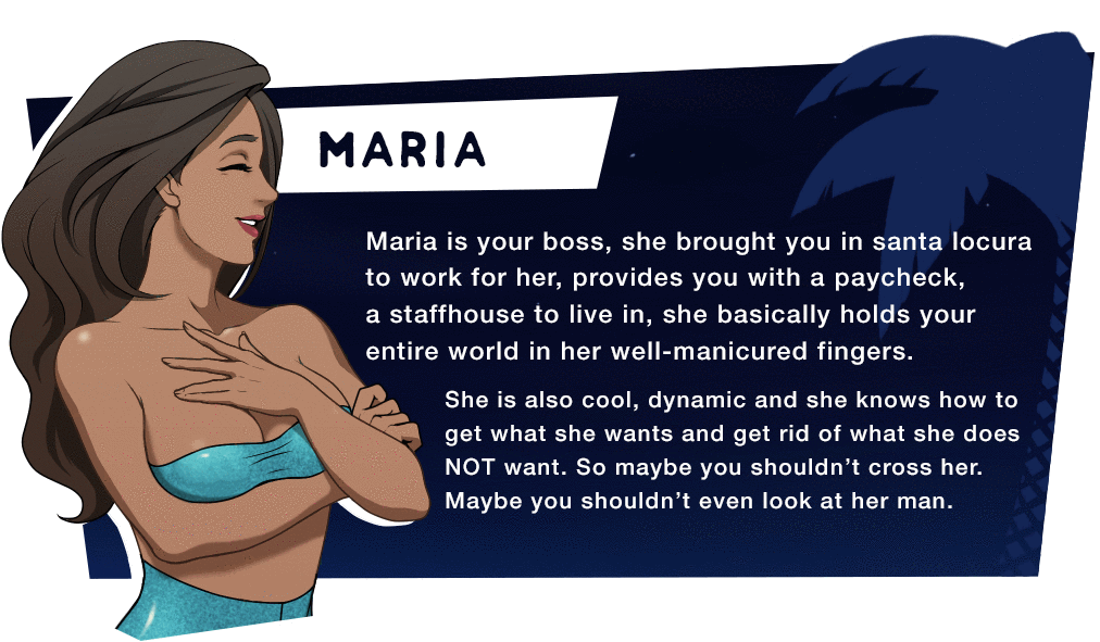 A queer and raunchy adult comedy with a tropical flavor. As the main character, you get to move to a Caribbean island named Santa Locura, working the summer away in a bar named The Inqueersition.