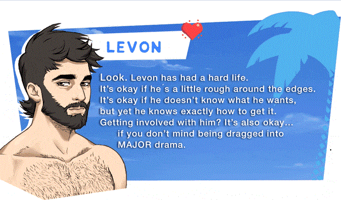 MAX: Max just moved to the island looking for a chance at a fresh start. He has NO idea what’s in store for him. But he’s young, he’s cute,and life usually works out just fine for those kind of people.