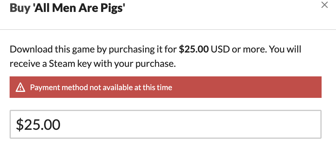 Hi there, I want to buy the game but seems like all payment methods are not available on itch now. Is there other platform that I can buy this game?